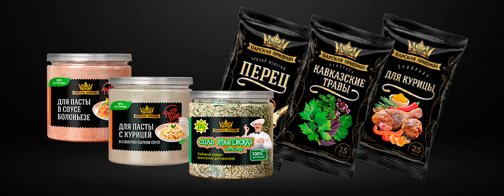 «Царская Приправа» предлагает более 200 видов продукции — от классических специй до уникальных авторских смесей. Бренд реализует продукцию в различных форматах упаковки: